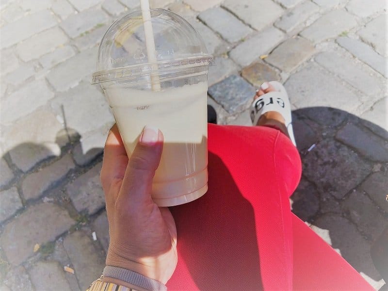 In Form von Latte Macchiato. Wenn es so einen nicht gibt, dann Kaffee mit viel Milch. Mässig süß mit Zucker, besser noch Süßstoff.