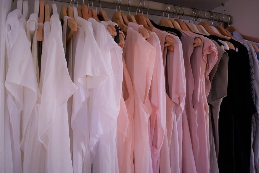 Da kann ich sofort antworten. Die dominierenden Farben in meinem Kleiderschrank sind weiß, rosa, rose, grau und mittlerweile auch schwarz.