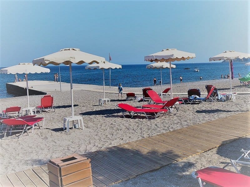 So richtig tollen Sand, im Mai, am Strand von Rhodos. Ich spüre aber ständig den Sand vom Sandkasten zwischen meinen Zehen. Zählt das auch?