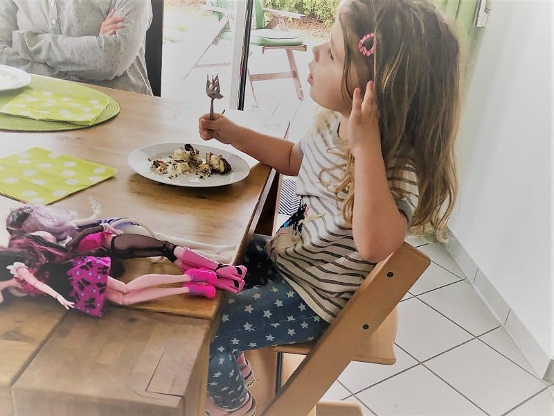 Nach dem Essen hat IB ihre Hausaufgaben gemacht und ML ist in ihr Zimmer zum Spielen. Das macht sie Mittag immer und ich glaube, sie genießt die Ruhe ohne ihre Schwester. Da spielt sie so schön alleine, manchmal sogar ein oder zwei Stunden.