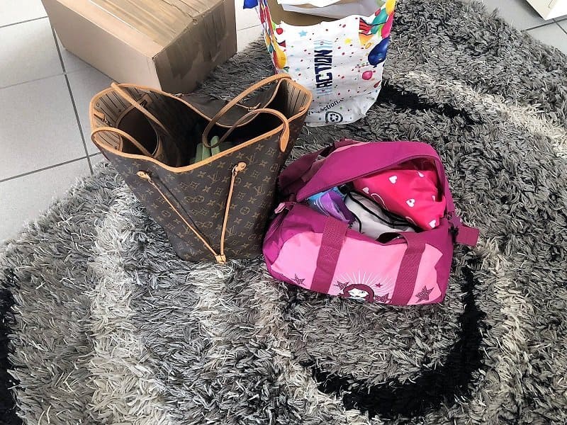 Um 14.00 sind wir los ins Ballett. Die Große musste mit, weil Oma keine Zeit hatte. So sieht es aus, wenn man für 2 Kinder Ballettkleidung, für 1 Kind Karatekleidung und seine Post mitnehmen muss.
