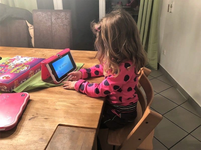 Endlich um 19.00 Uhr zu Hause, haben die beiden nochmal mit ihren Tablets spielen dürfen, bis das Essen fertig war.