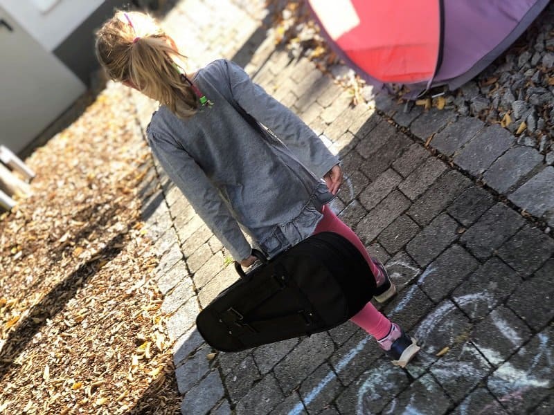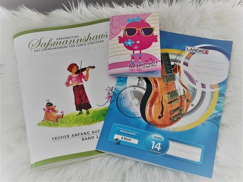 Die halbe Stunde verging ziemlich schnell und sie haben auch schon die ersten Seiten des Übungsheftes durchgemacht und natürlich etliche Male das richtige Greifen des Bogens besprochen. Ich kann es ihr zu Hause auch nur schwer erklären, weil ich überhaupt keine Ahnung habe und ihr nur das sagen kann, was mir die Lehrerin gezeigt hat. Aber das werden wir schon hinbekommen.