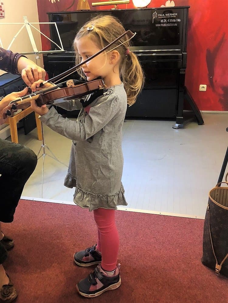 Um halb vier musste ich mit ML auch schon wieder los, denn heute ist ihre erste offizielle Geigenstunde, mit eigener (geliehener) Geige und Lerrnmaterial, das wir besorgt haben.
