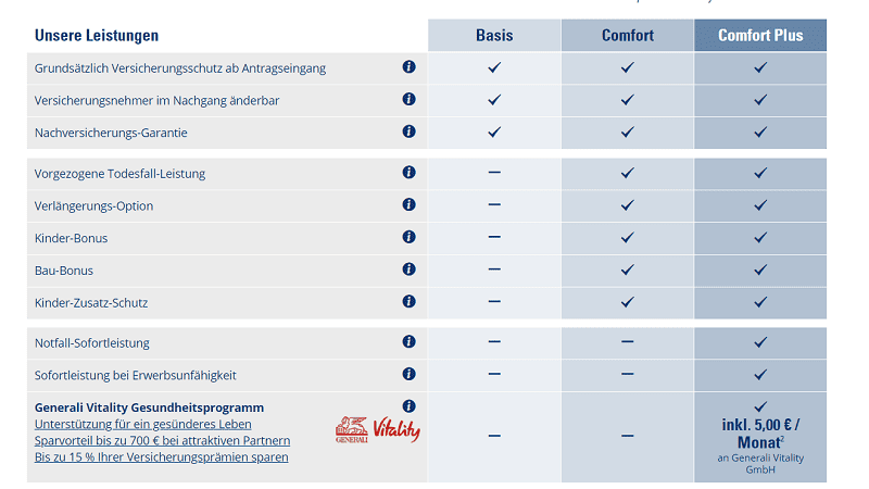 Man hat viele unterschiedliche Möglichkeiten diese Versicherung von CosmosDirekt abzuschließen. Die Versicherungssumme ist frei wählbar. Auch die Laufzeit kann, je nach Bedarf, festgelegt werden. Man kann zwischen Basis, Comfort und Comfort Pro wählen. Jedes Stufe beinhaltet weitere und bessere Konditionen. Das Abschließen ist selbsterklärend und immer mit Tipps hinterlegt. Auch ein Chatfenster öffnet sich um Fragen zu stellen worauf man auch schnell die Antworten erhält.