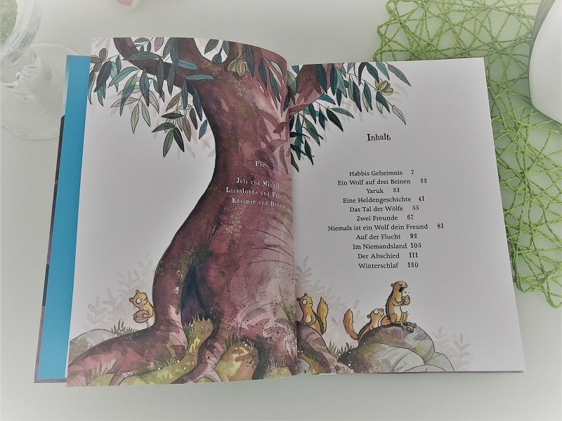 Eine Geschichte über Freundschaft, Mut, Angst, Familie, Andersartigkeit und tiefe Verbundenheit. Der Thienemann-Esslinger-Verlag hat uns dieses tolle Kinderbuch zugeschickt. Dafür möchte ich mich natürlich bedanken und meine Bewertung beeinflusst dies in keiner Weise. Die Geschichte vom Erdhörnchen Habbi und dem Wolf Yaruk erzählt über eine Freundschaft, die so eigentlich nicht bestehen dürfte. Trotzdem halten sie an dieser fest und stehen füreinander ein. Das Cover hat mich sofort angesprochen und ich finde es sehr gelungen.