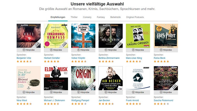 Mittlerweile gibt es schon fast jedes Buch als Hörbuch und ich gestehe, diese haben durchaus ihren Reiz. Bei Audible bin ich auf eine große Auswahl gestoßen. Hier gibt es eine Menge zu entdecken und Hörbücher aus allen Kategorien.