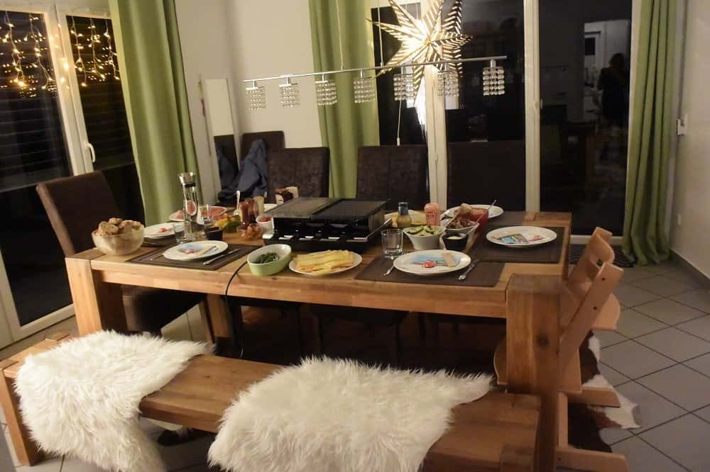 Sie waren bei uns und es gab Raclette, was wirklich lecker war, aber wie immer viel zu viel. Die Mädels haben gespielt und getobt. Der Kleine hat uns unterhalten, bis er hundemüde war und im Wagen eingeschlafen ist. Um ca. 23.Uhr ist meine Mama noch dazugekommen und hat um 00.00 Uhr mit uns angestoßen.