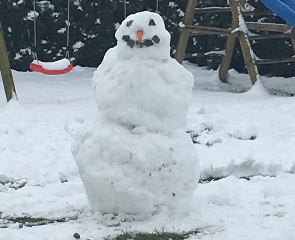 Einen Tag vor Silvester hat es doch tatsächlich richtig viel geschneit. Der Schnee war richtig gut und perfekt. Meine Mädels sind sofort raus und haben einen Olaf gebaut. Als ihnen kalt wurde, meinten sie, dass der Schneemann noch nicht fertig ist und sie ihm später noch Knöpfe und Arme machen. Tja eine Stunde später hat es geregnet und innerhalb von paar Stunden war der Schnee wieder weg und Olaf kaputt.