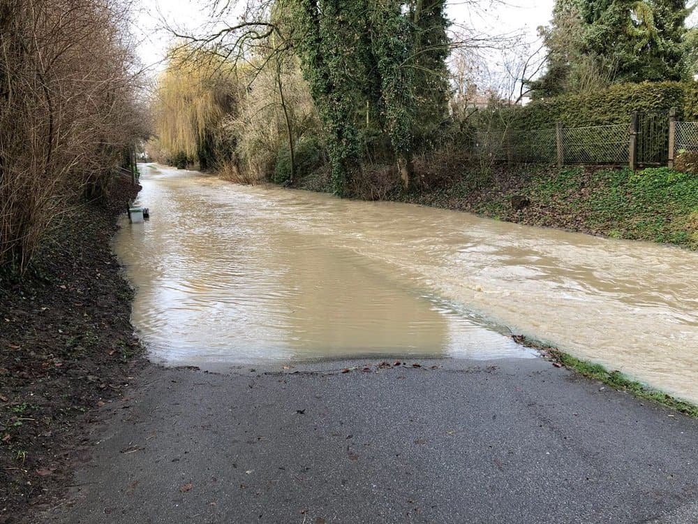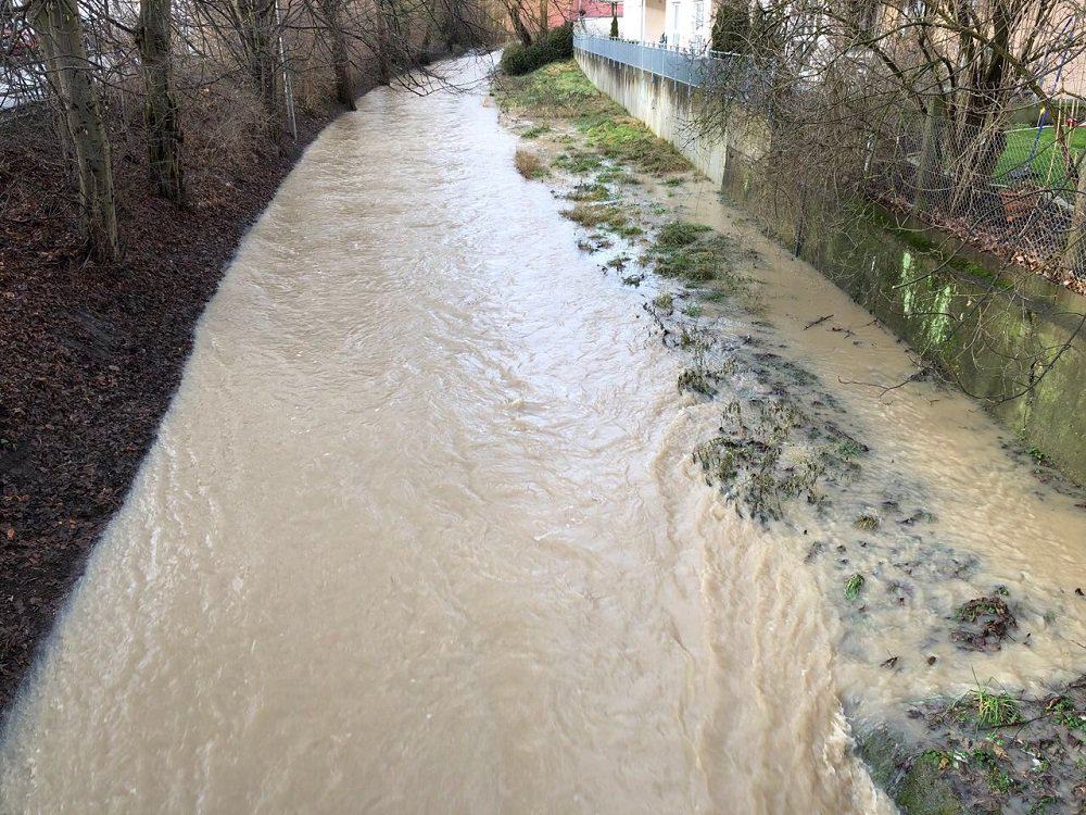 Am Freitag schien sogar mal die Sonne, aber nur am Vormittag, dann war sie wieder weg. Eine Freundin wohnt direkt an unserem Stadtbach, an dem ich meistens beim Joggen entlanglaufe. Sie hat mir heute Mittag diese Fotos geschickt. Hochwasser im Winter, daran kann ich mich nicht erinnern. Vielleicht mal nach der Schneeschmelze, aber doch nicht durch Massen an Regen.