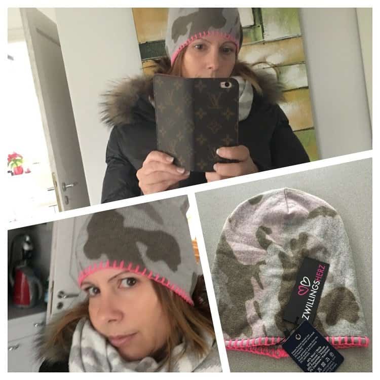 Guckt mal, ich habe bei den Adventsgewinnspielen auf Facebook eine tolle Mütze von Zwillingsherz* gewonnen. Die ist am Montag gekommen und ich finde sie super kuschelig und auch das Camouflage – Muster mag ich gerne. Hab mich richtig gefreut über meinen Gewinn und habe mir gleich am Montag Nachmittag in der Stadt einen einigermaßen passenden Schal von Zwillingsherz gekauft, der war sogar reduziert.