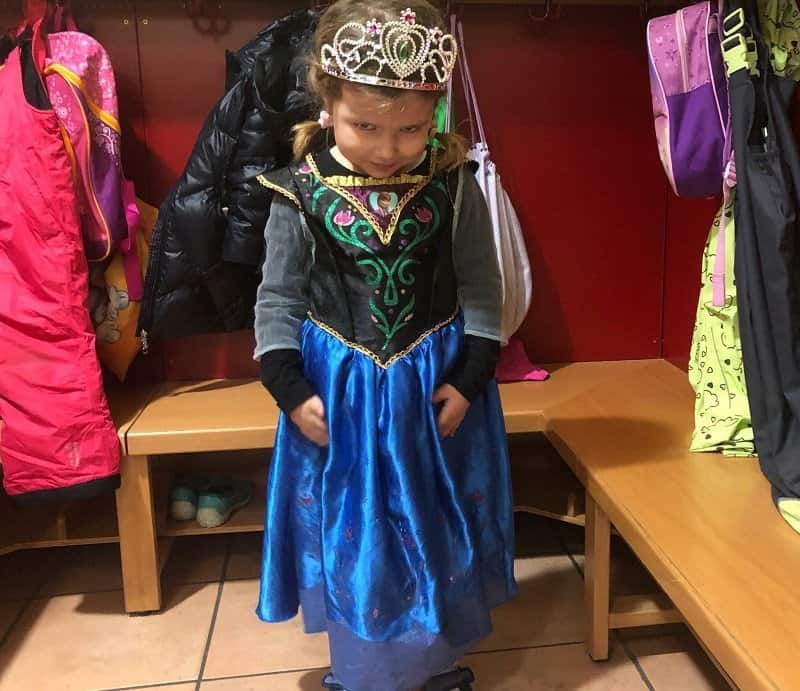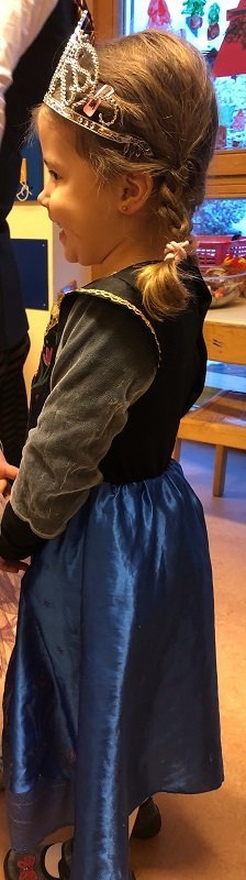 Donnerstag hatten sie im Kindergarten allgemeine Faschingsgaudi und konnten sich verkleiden, wie sie wollten. Ml hat sich für Prinzessin Anna entschieden und ich fand, das stand ihr eigentlich recht gut und bei den ganzen Elsas  ist das ja mal eine gute Alternative.
