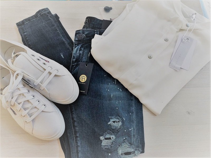 Am Mittwoch hatte ich Nachmittag einen Termin zum Nägel machen. Gott sei Dank, denn sie waren schon grausig. Danach bin ich noch in die Stadt und konnte mal wieder nicht standhalten. Ich musste einfach ein paar Frühlingssachen shoppen und das natürlich ,wie immer in meinem Lieblingsgeschäft. An dem Laden komme ich an diesem einen Mittwoch im Monat einfach fast nie vorbei und so habe ich mir wieder mal eine Jeans gegönnt. Die ist von Elias Rumelis, eine Bluse von Imperial und Plateau-Sneakers von Superega. Vorher war ich noch in einem anderen Kaufhaus und dort habe ich mir noch ein kurzärmeliges Blusenshirt in rose von Hallhuber mitgenommen. Gott sei Dank habe ich das gemacht, denn ich habe gesehen, dass diese Farbe im Onlineshop bereits ausverkauft ist.