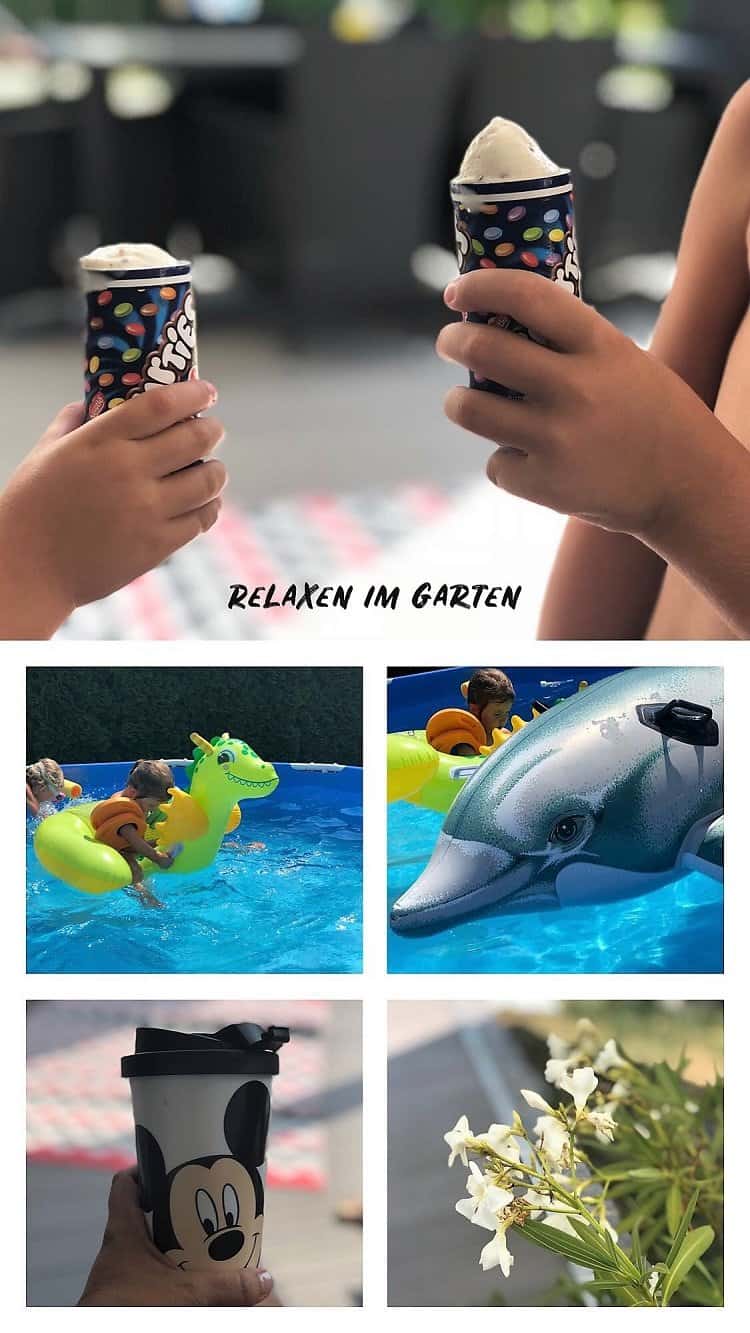 Wir waren an diesen Tagen nicht mal in einem Geschäft. Doch, am Montag war ich nach der Arbeit schnell beim Aldi, ansonsten hat alles ausgereicht, was wir letztes Wochenende eingekauft haben. Wie ihr seht, kann ich von Montag bis Donnerstag wirklich nicht viel berichten. Wir haben nur relaxed, Eis gegessen, im Pool gebadet, gelesen und Kaffee getrunken. Also einfach faul gewesen, aber das darf man auch mal, wenn es schon, bester Sommer 2018, heißt ich habe allerdings zu Hause schon ein paar Dinge gemacht, so ist es auch wieder nicht.