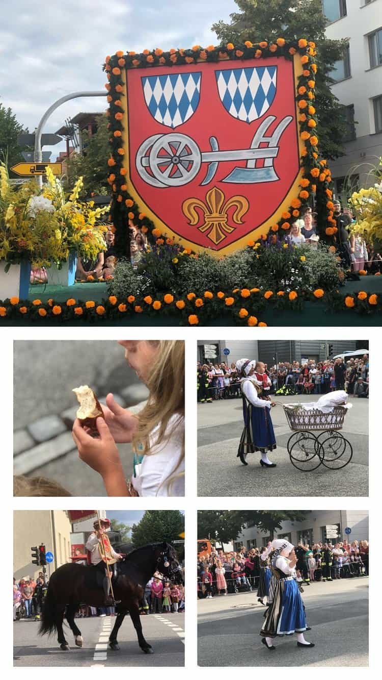 Die Breze auf dem Foto haben die Bäcker verteilt, von den Metzgern gab es Wurst und am schönsten waren natürlich die vielen, vielen Pferde. In allen Fellfarben, die man sich nur vorstellen kann. Aber auch die Dirndl und die anderen Outfits waren sehr schön. Auf dem unterem Fotos sieht man das neue Agnes Bernauer Paar.