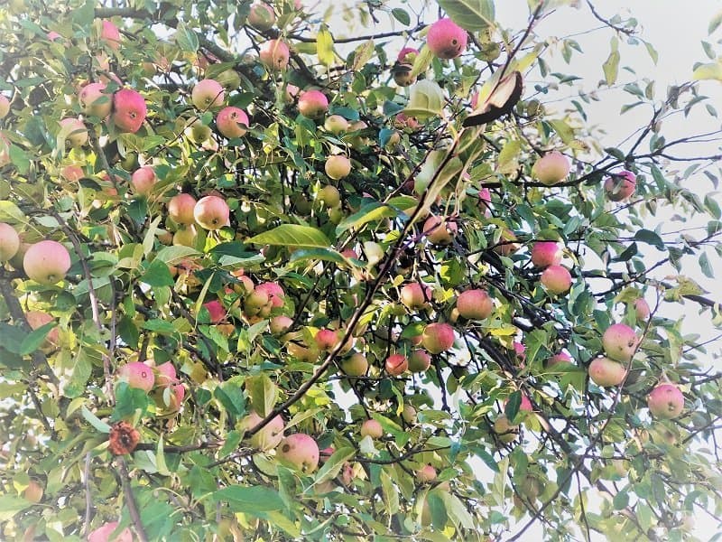 Seht ihr die vielen Äpfel auf dem Baum. Gibt es bei euch dieses Jahr auch so viele. Die meisten, die Apfelbäume haben wissen überhaupt nicht mehr wohin damit. Soviel Kuchen, Saft und Apfelmus kann gar niemand machen. Sogar die Firmen bei uns, die Apfelsaft herstellen, brauchen keine mehr. Denen kann man normalerweise Äpfel bringen, aber dieses Jahr sind sie anscheinend gar nicht mehr so scharf darauf und man muss sich vorher anmelden, wenn man welche hin bringen will. Das auf dem Bild ist ein relativer kleiner und junger Baum und hat schon so viele Äpfel.