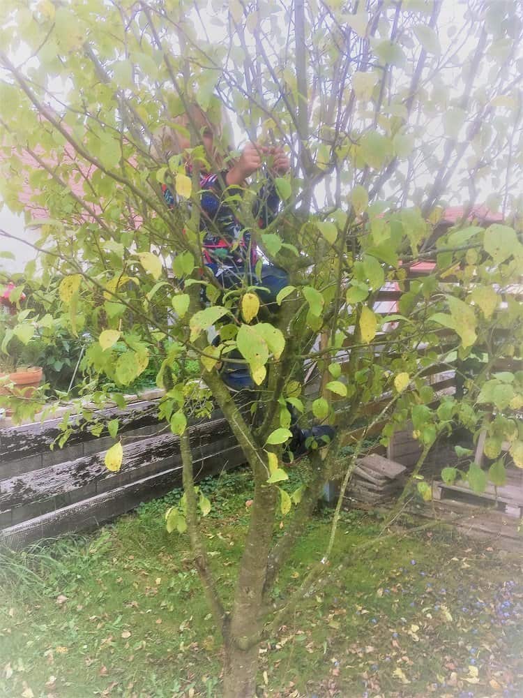 Mittwoch war Feiertag, Tag der Deutschen Einheit und wir haben alle ausgeschlafen. Die Kleine ist als Letzte aufgestanden, die Große als Erste. Mittag sind sie mit dem Papa zur Oma gefahren, weil die soviel Birnen an den Bäumen hat und sie sich welche holen sollen. Nachmittags waren sie noch spazieren und sind auf den Bäumen herum geklettert. Ich habe ein paar Beiträge fertig gemacht, aufgeräumt und lange gelesen.