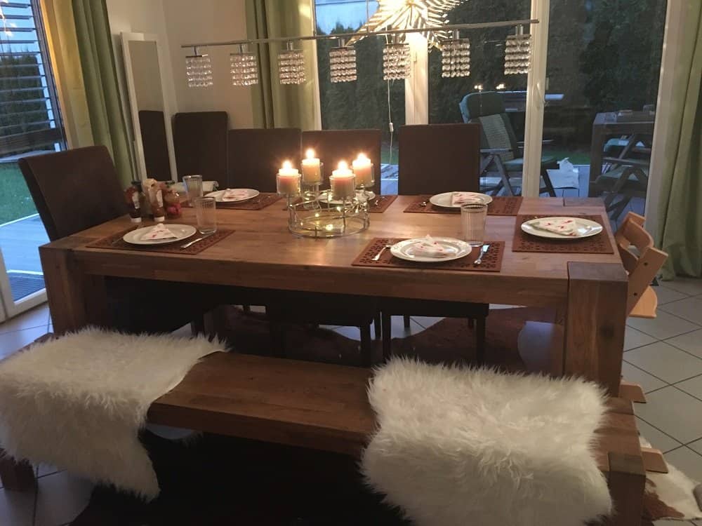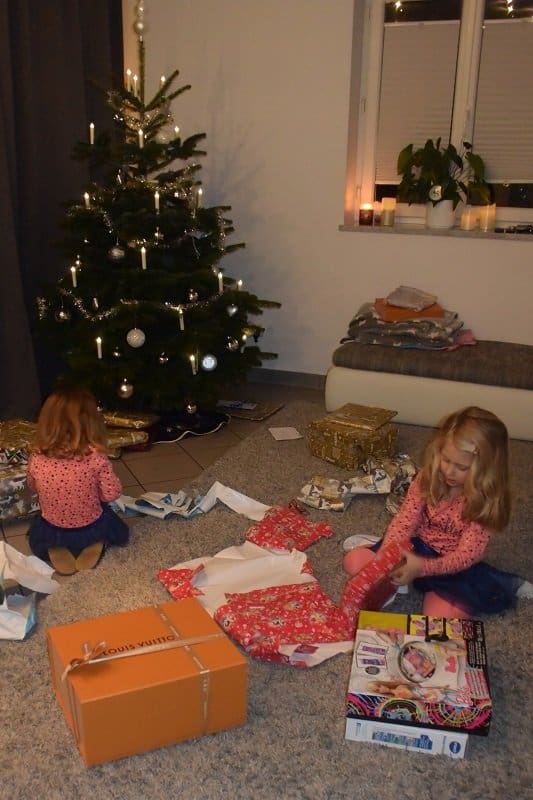 Nach dem Geschenke auspacken gab es das Essen. Es war wirklich lecker und wir waren alle so voll, dass keiner mehr einen Nachtisch geschafft hätte. Im Anschluss haben wir noch gequatscht und die Mädels haben gespielt. Um 22 Uhr habe ich die beiden ins Bett gebracht und um ca. halb eins ist meine Mama nach Hause gegangen und wir auch gleich bratfertig ins Bett.