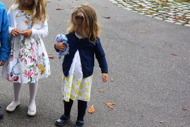Für die Mädels haben wir letztes Jahr allerdings schon etwas gekauft, für das Schulkind ein ganz, ganz tolles Kleid von Monnalisa und für die Kleine eines von Boboli. Für beide haben wir passende kurze Strickjacken dazu ausgesucht, weil wir ja nicht wussten, wie das Wetter wird. Also ich finde schon, dass es für die Einschulung auch ein besonderes Kleid sein darf. Für Jungs vielleicht mal eine coole Chino mit Hemd, muss ja kein Anzug sein.