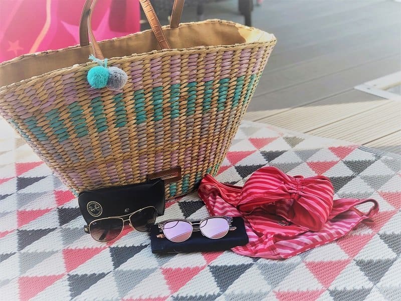 Bild: Korb: habe ich in Griechenland gekauft, Bikini: Marc O´Polo, Sonnenbrille: Ray Ban und Le Specs.